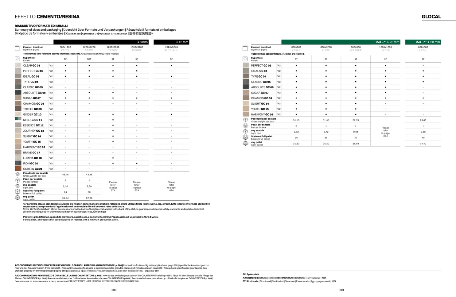 ACCORGIMENTI SPECIFICI PER L’APPLICAZIONE DELLE GRANDI LASTRE IN 6 MM DI SPESSORE: p. 668 | Precautions for 6mm big slabs applications: page 668 | spezifische Anweisungen zur