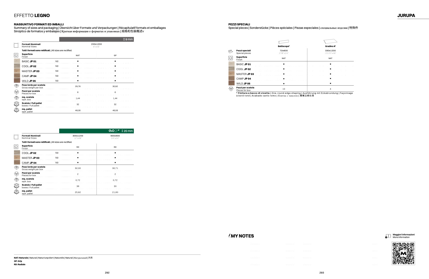 Sinóptico de formatos y embalajes | Краткая информация о форматах и упаковках | 规格和包装概述v