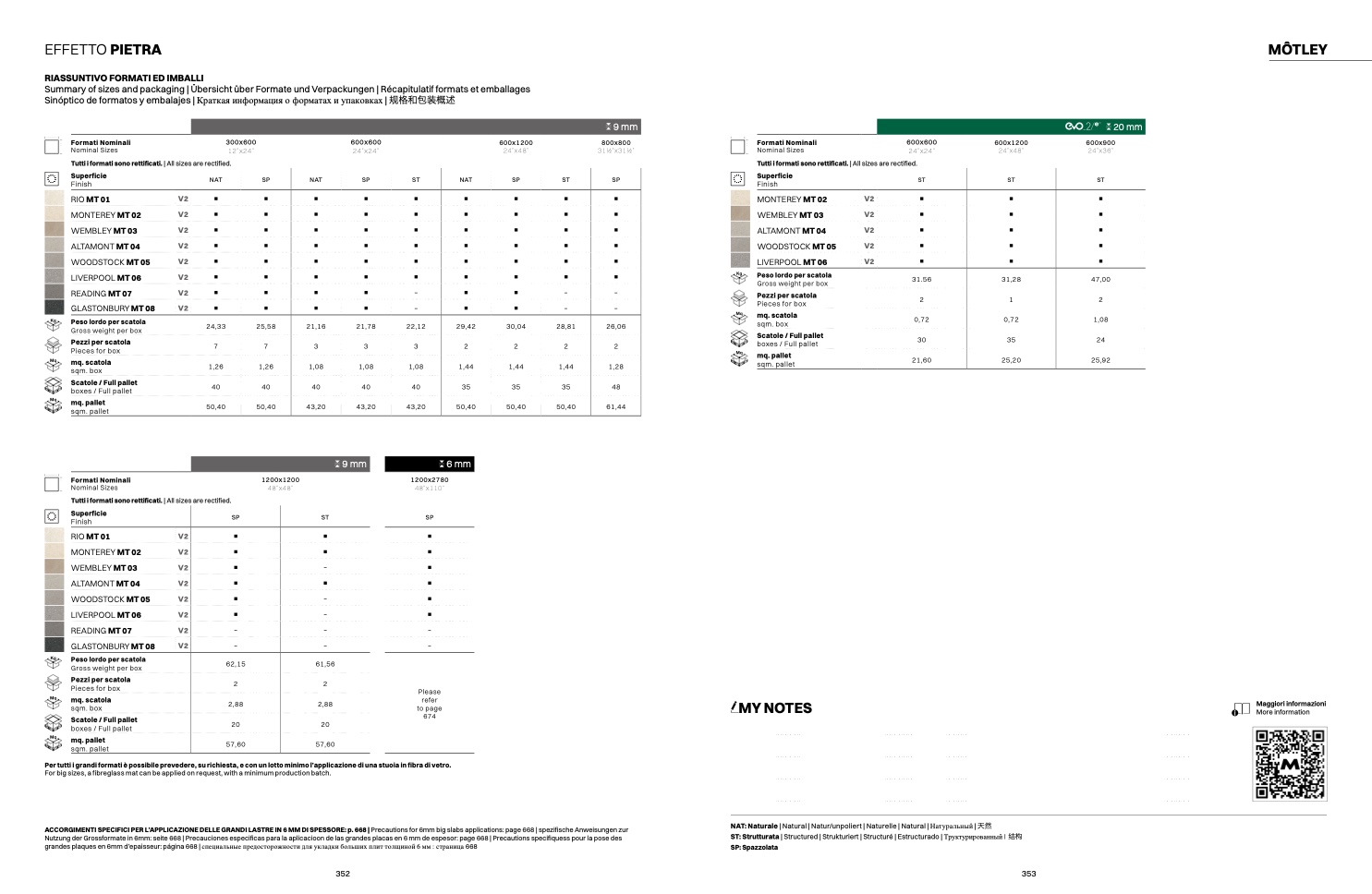 Sinóptico de formatos y embalajes | Краткая информация о форматах и упаковках | 规格和包装概述