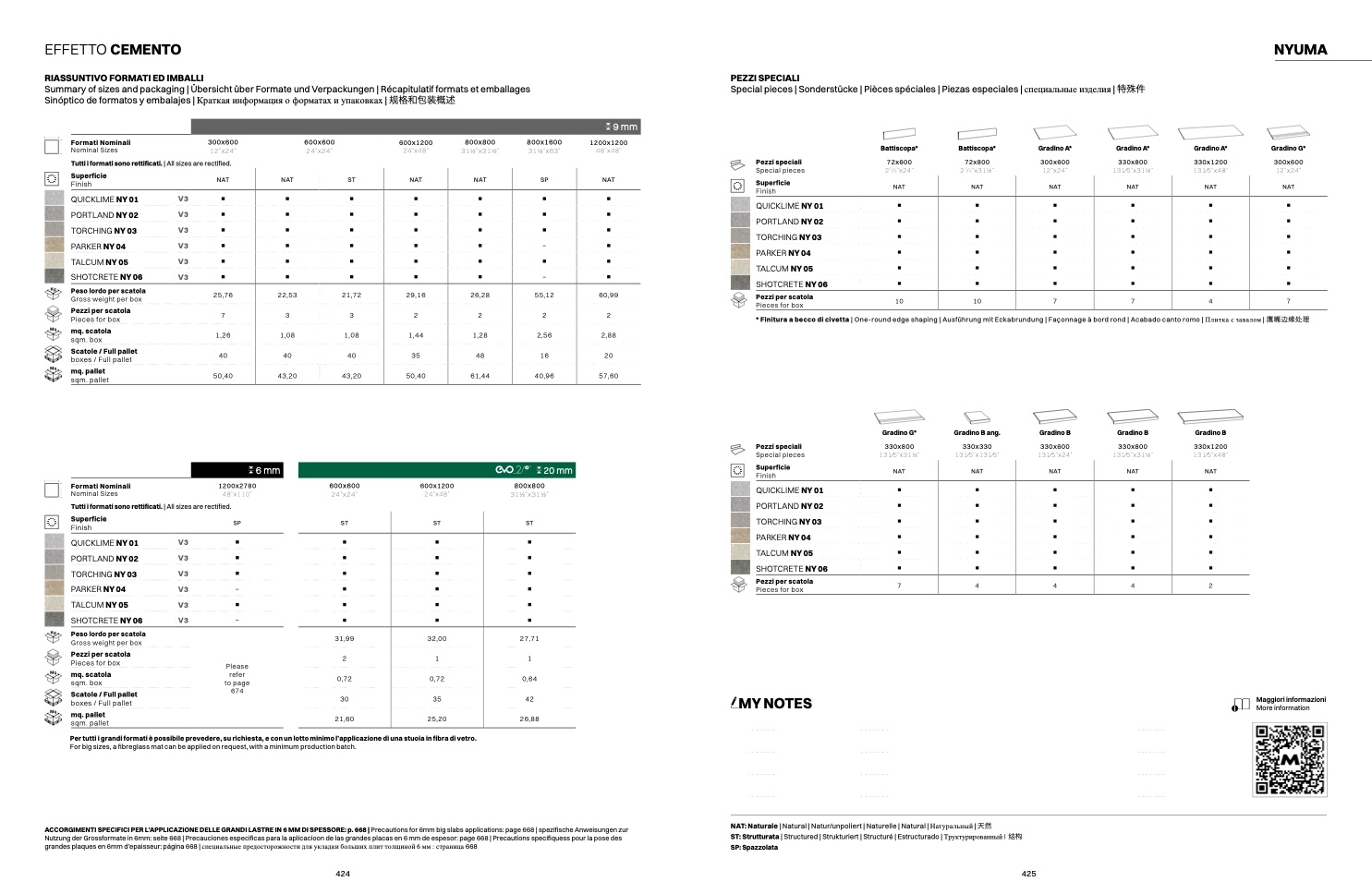 Sinóptico de formatos y embalajes | Краткая информация о форматах и упаковках | 规格和包装概述