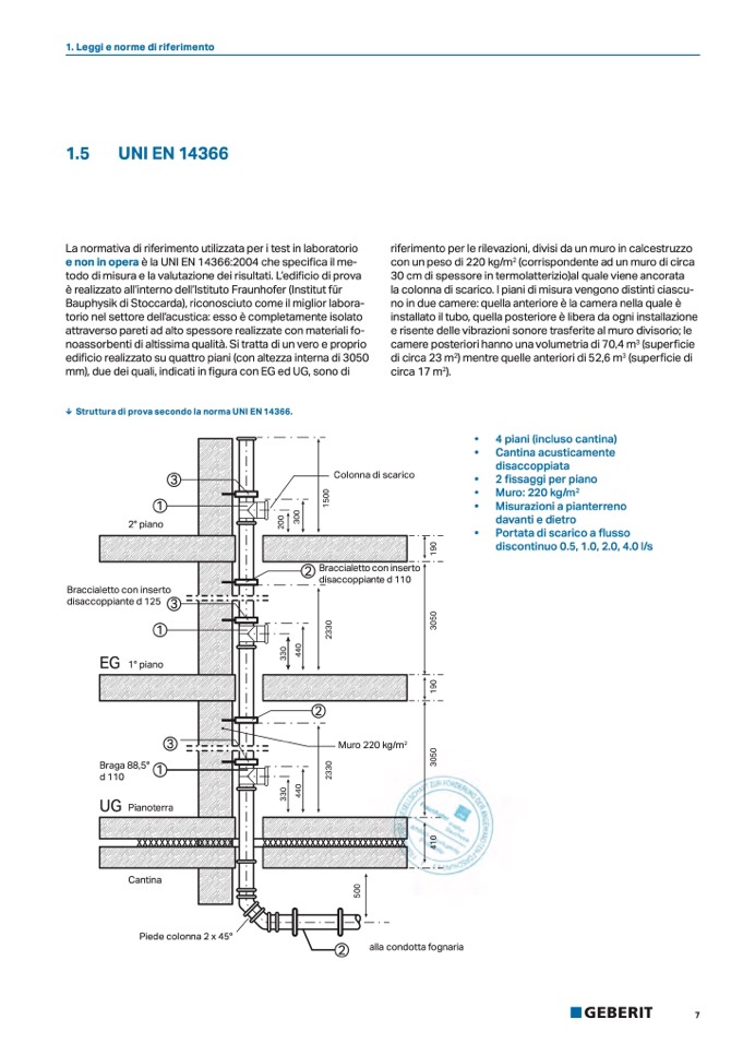 ↓ Struttura di prova secondo la norma UNI EN 14366.