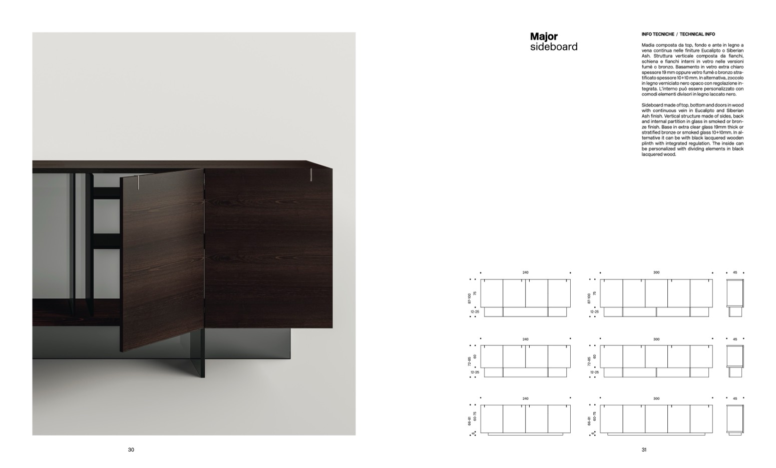 schiena e fianchi interni in vetro nelle versioni