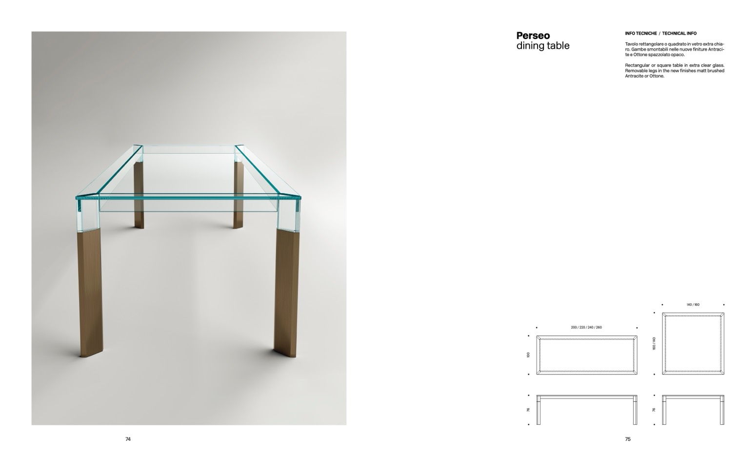 Tavolo rettangolare o quadrato in vetro extra chia-