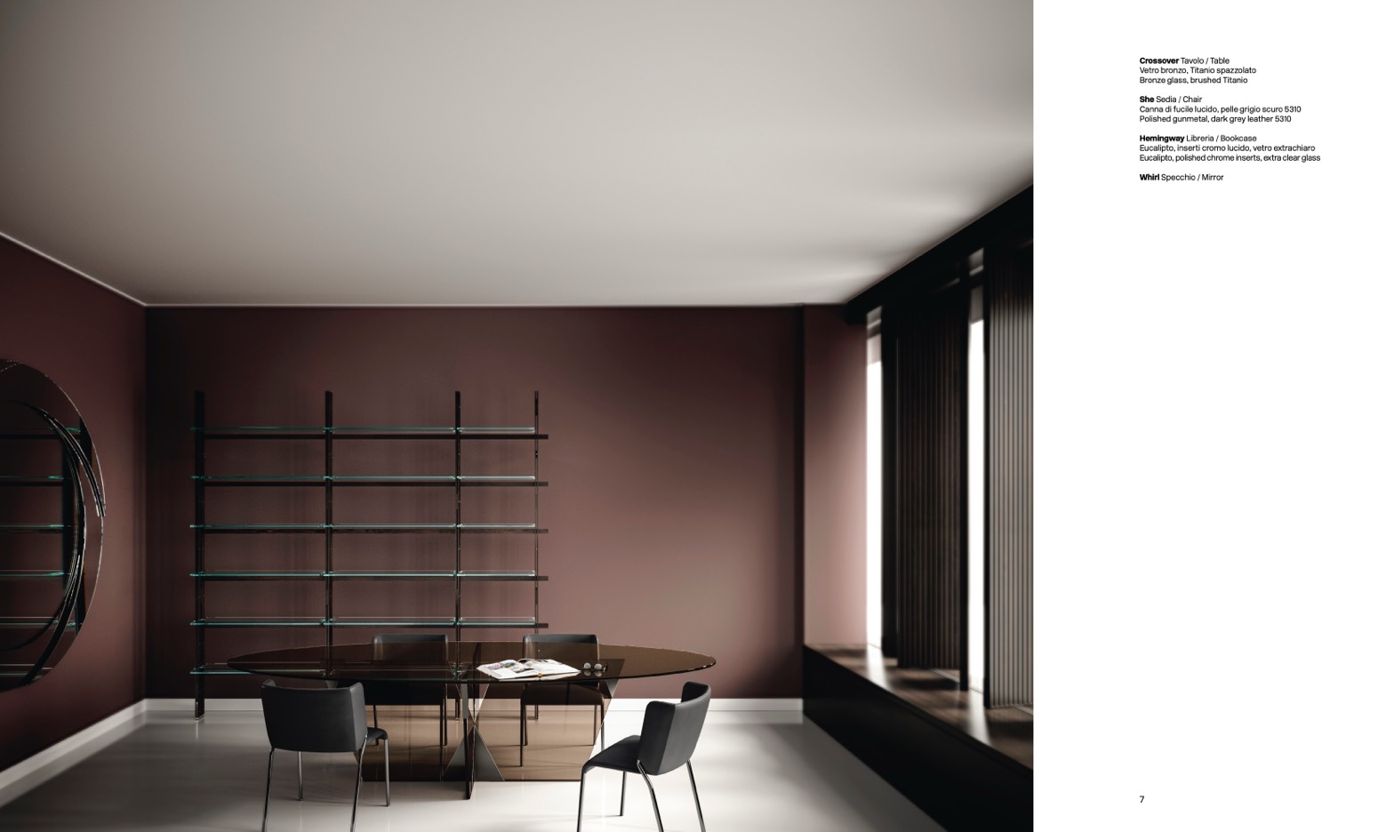 Eucalipto, inserti cromo lucido, vetro extrachiaro