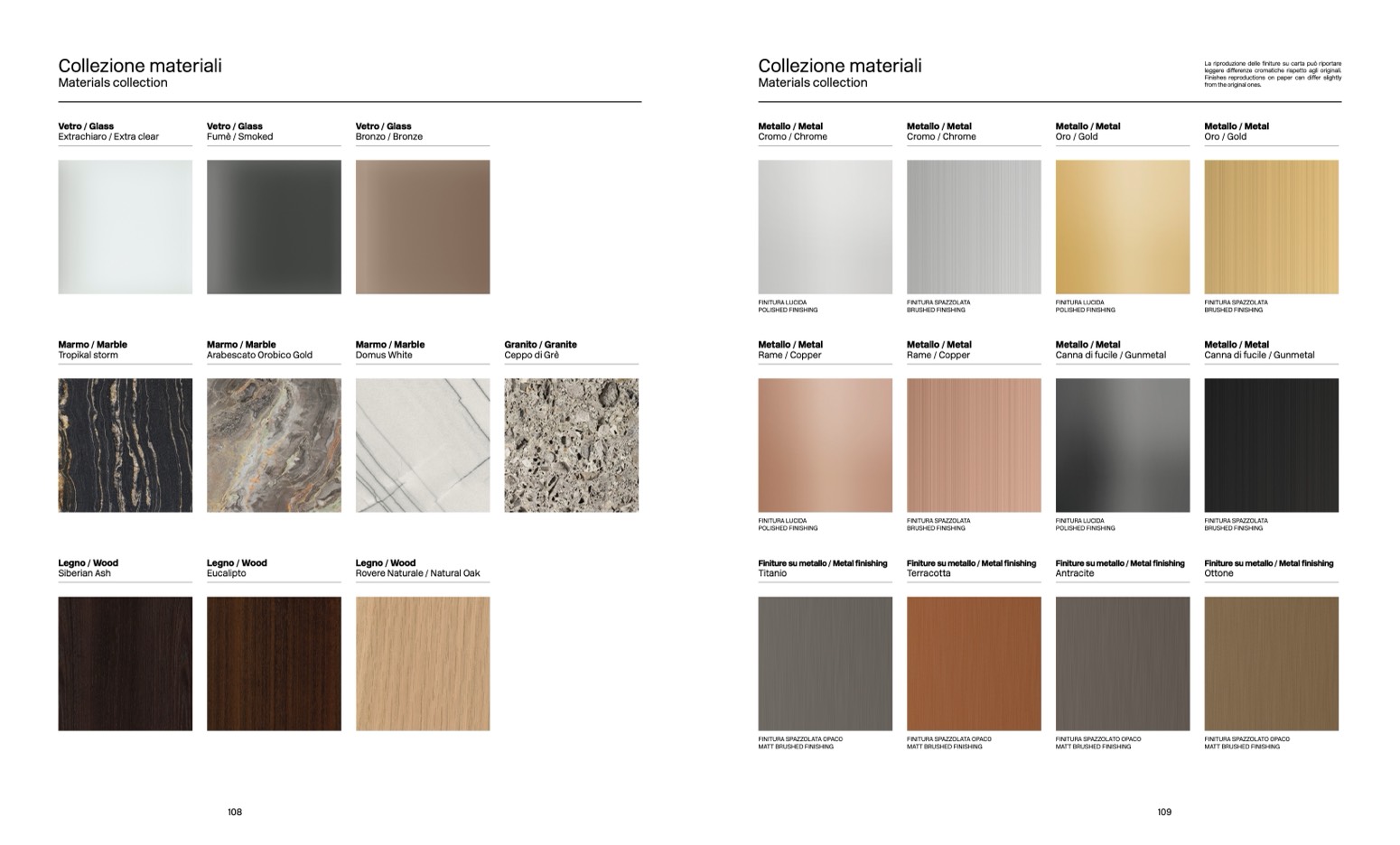 La riproduzione delle finiture su carta può riportare