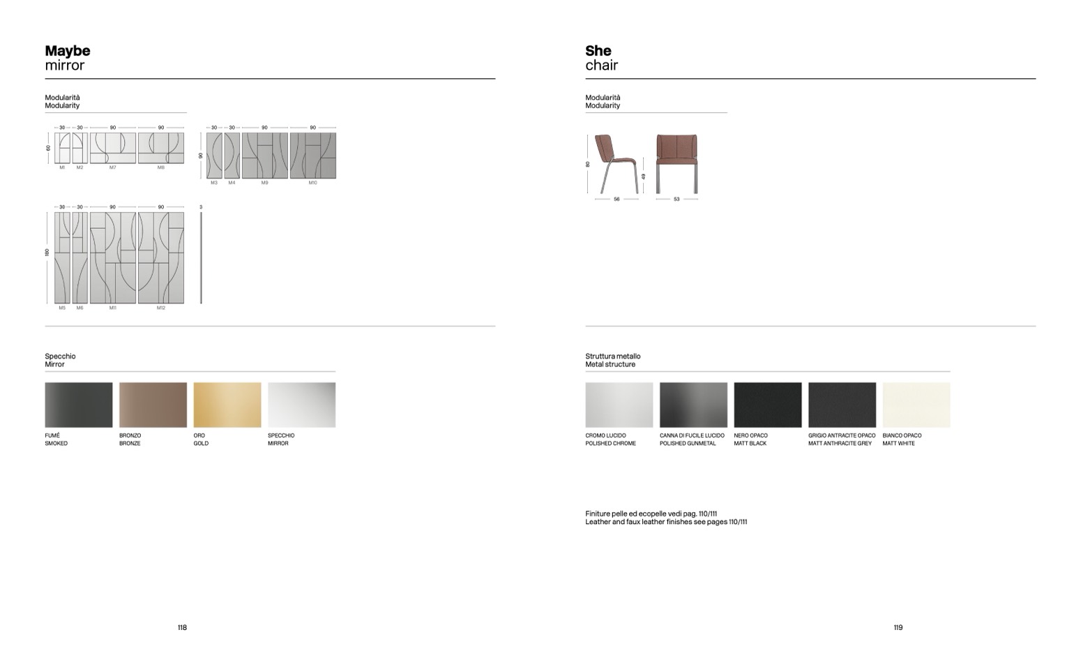 Leather and faux leather finishes see pages 110/111