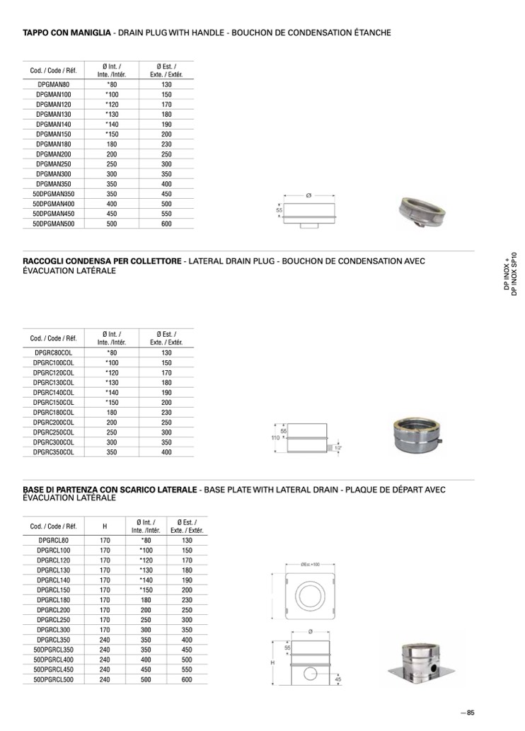 RACCOGLI CONDENSA PER COLLETTORE - LATERAL DRAIN PLUG - BOUCHON DE CONDENSATION AVEC