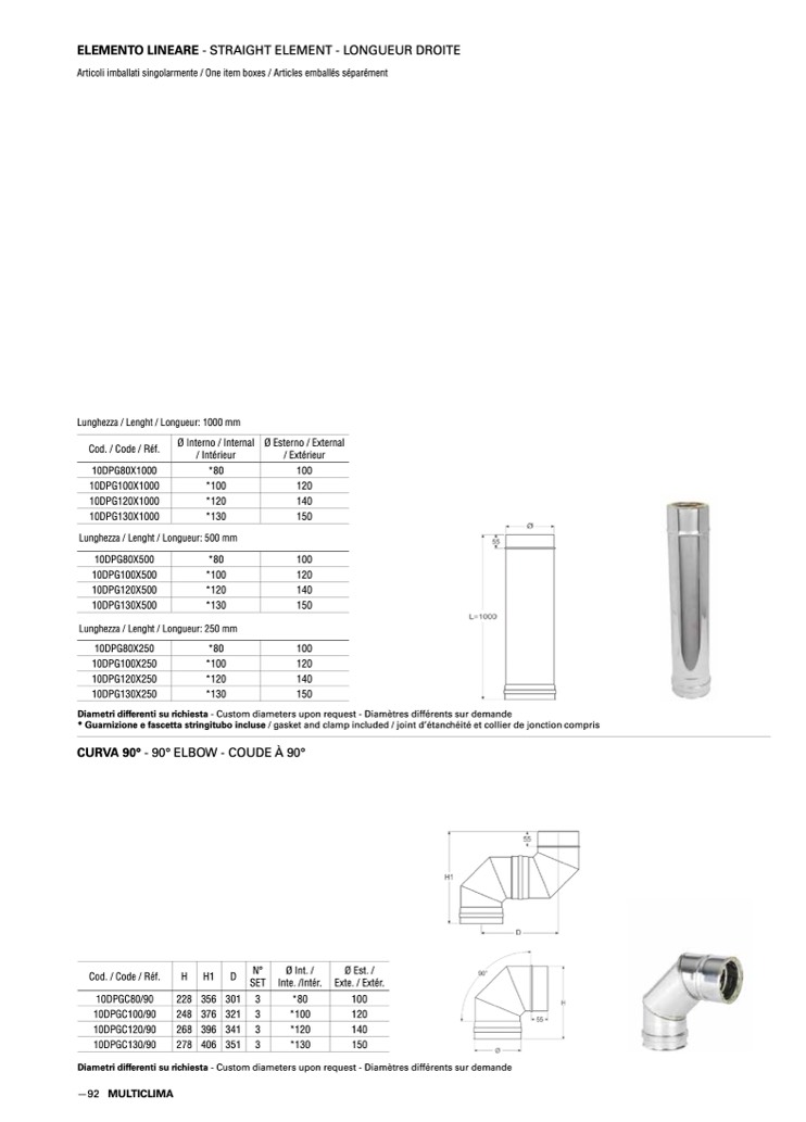 * Guarnizione e fascetta stringitubo incluse / gasket and clamp included / joint d’étanchéité et collier de jonction compris