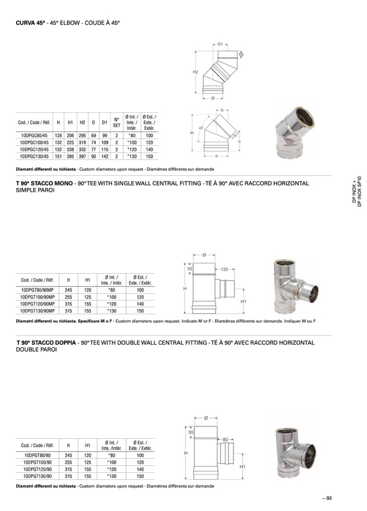 T 90° STACCO DOPPIA - 90° TEE WITH DOUBLE WALL CENTRAL FITTING - TÉ À 90° AVEC RACCORD HORIZONTAL
