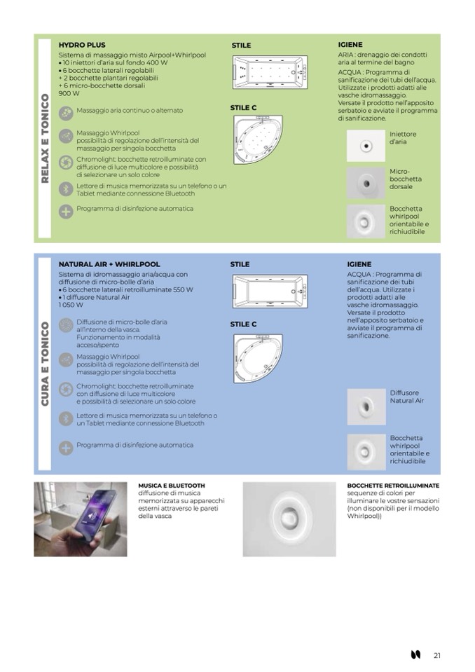Sistema di massaggio misto Airpool+Whirlpool