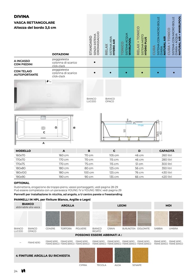 Pannelli per installazione in nicchia, ad angolo, a U centro parete o freestanding