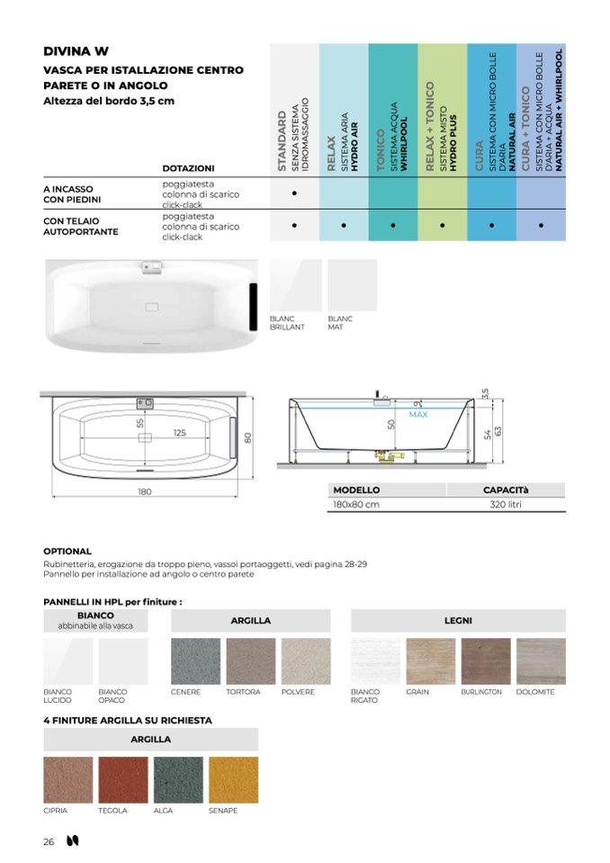 Rubinetteria, erogazione da troppo pieno, vassoi portaoggetti, vedi pagina 28-29