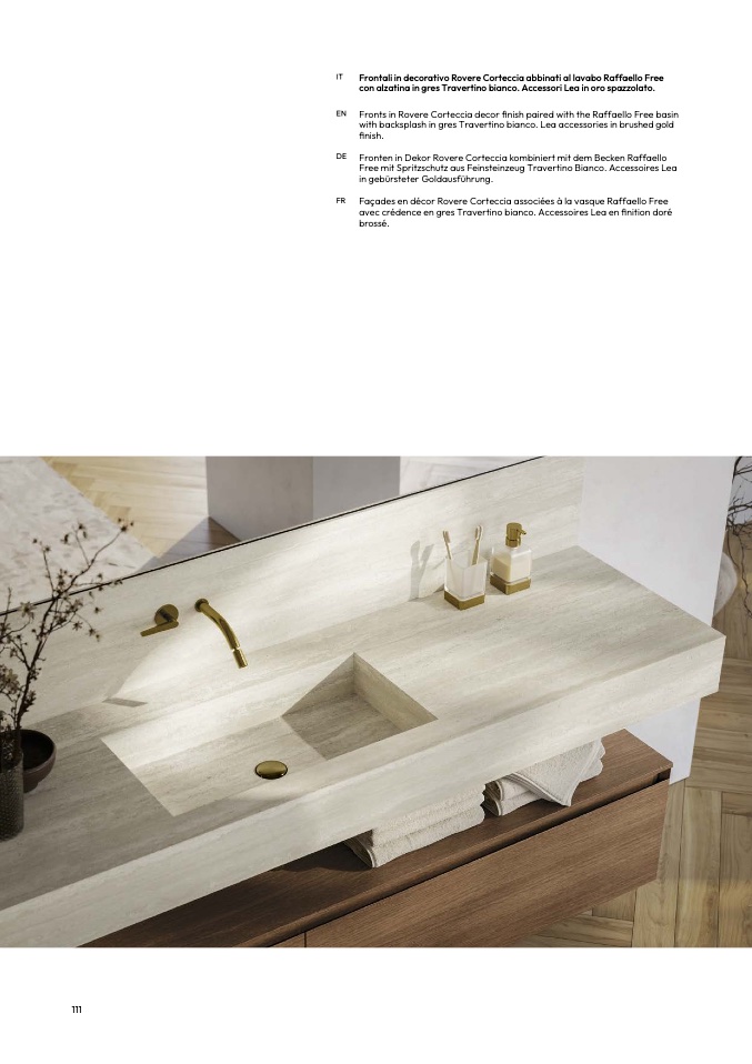 Façades en décor Rovere Corteccia associées à la vasque Raffaello Fre