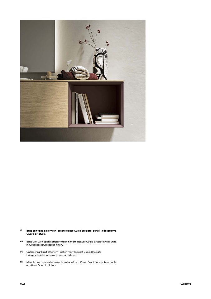 Base con vano a giorno in laccato opaco Cuoio Bruciato; pensili in decorativ