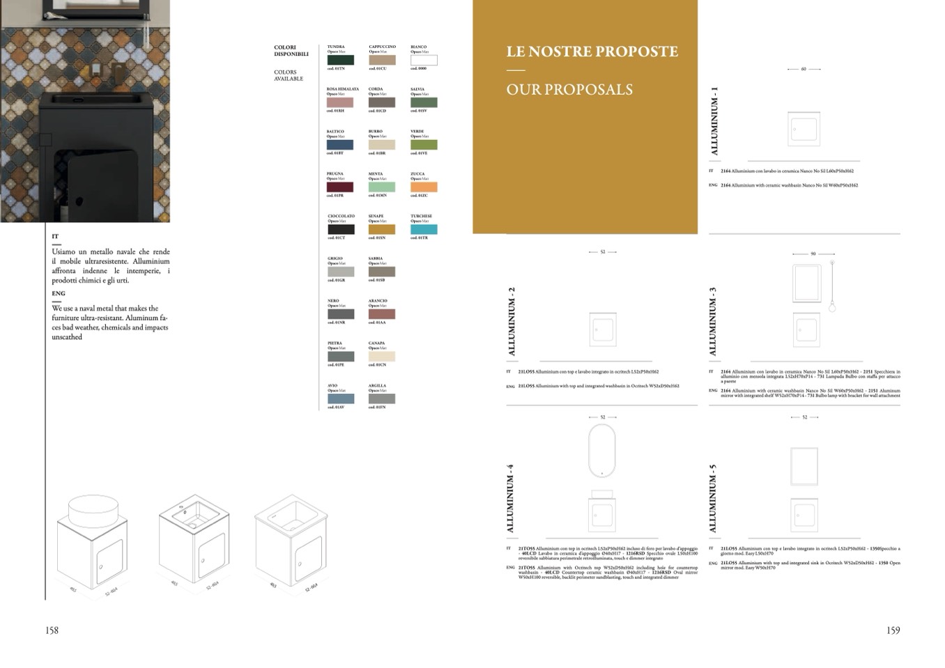 2164 Alluminium con lavabo in ceramica Nanco No Sil L60xP50xH62 - 2151 Specchiera in