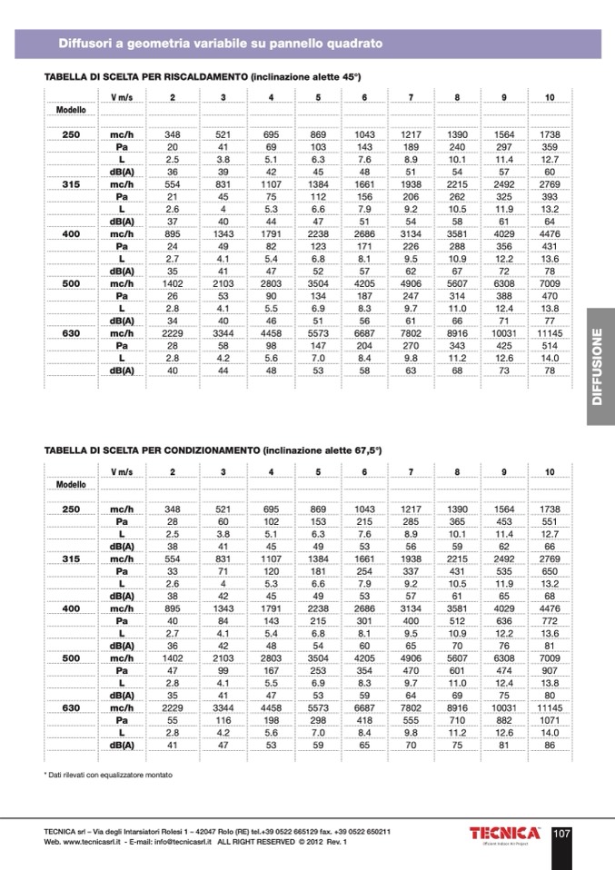 TABELLA DI SCELTA PER CONDIZIONAMENTO (inclinazione alette 67,5°)