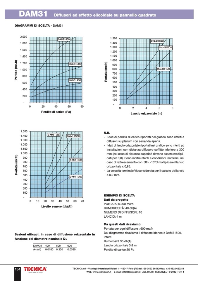Dal diagramma ricaviamo il diffusore idoneo è DAM31500,