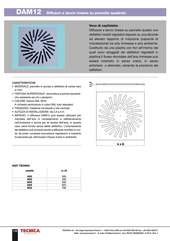 Web. www.tecnicasrl.it - E-mail: info@tecnicasrl.it ALL RIGHT RESERVED © 2012 Rev. 1