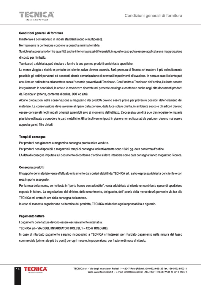 La merce viaggia a rischio e pericolo del cliente, salvo diverso accordo. Sarà premura di Tecnica srl evadere il più sollecitamente