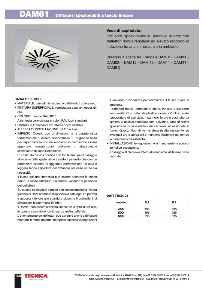 Web. www.tecnicasrl.it - E-mail: info@tecnicasrl.it ALL RIGHT RESERVED © 2012 Rev. 1