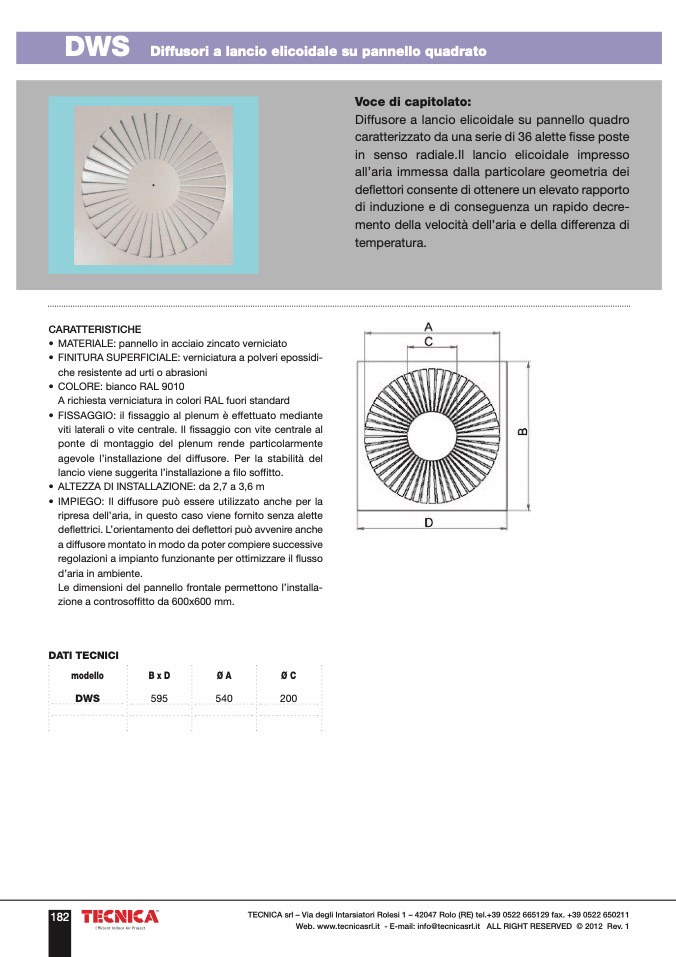 Web. www.tecnicasrl.it - E-mail: info@tecnicasrl.it ALL RIGHT RESERVED © 2012 Rev. 1