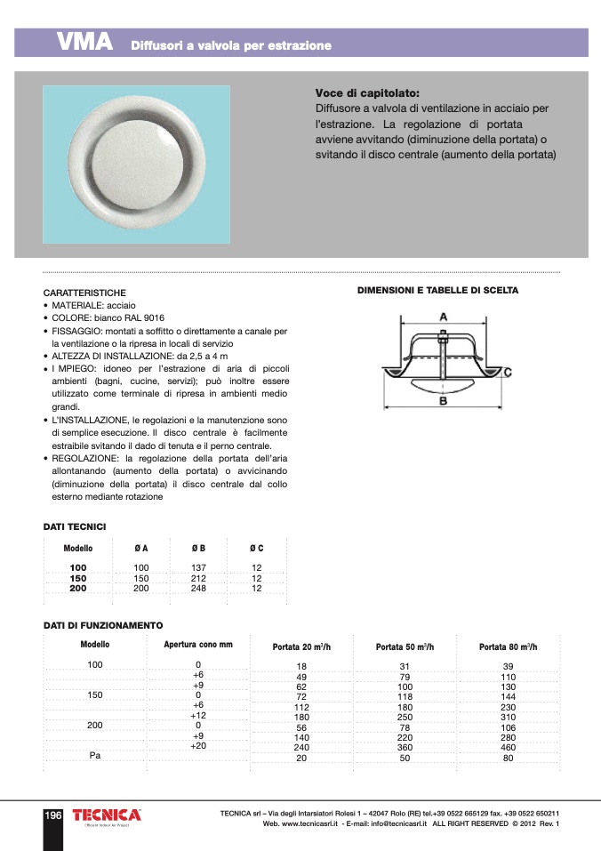 Web. www.tecnicasrl.it - E-mail: info@tecnicasrl.it ALL RIGHT RESERVED © 2012 Rev. 1