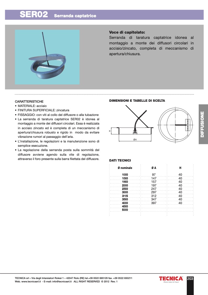• La serranda di taratura captatrice SER02