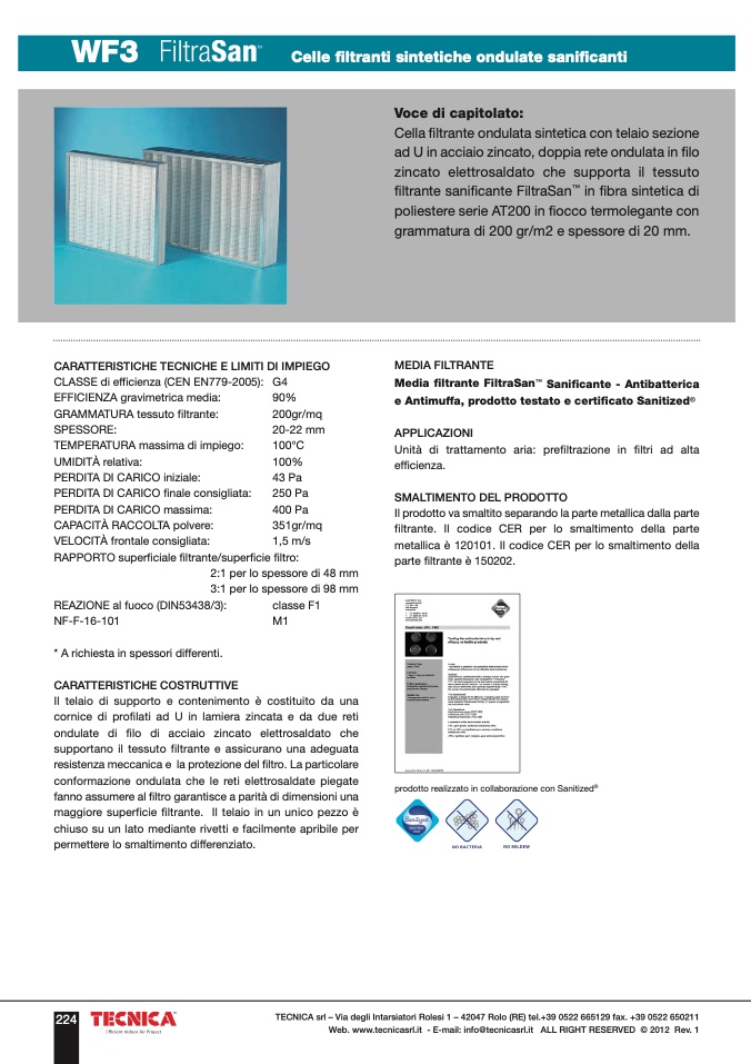 Media filtrante FiltraSanTM Sanificante - Antibatterica