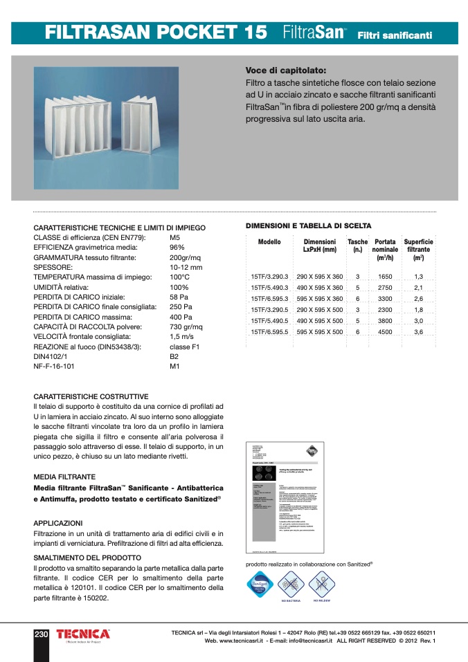 TECNICA srl – Via degli Intarsiatori Rolesi 1 – 42047 Rolo (RE) tel.+39 0522 665129 fax. +39 0522 650211