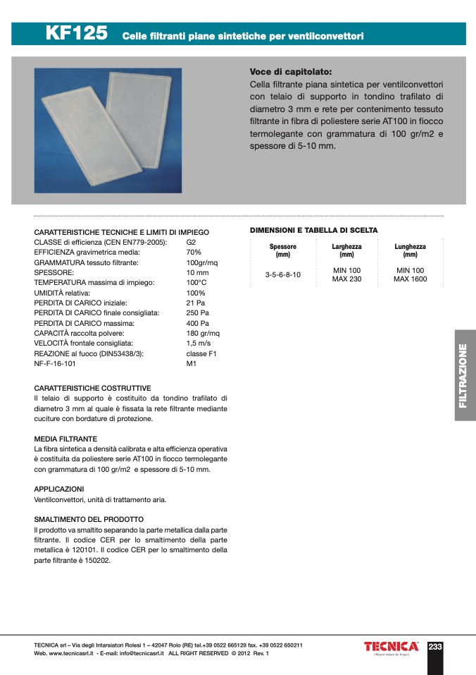 Web. www.tecnicasrl.it - E-mail: info@tecnicasrl.it ALL RIGHT RESERVED © 2012 Rev. 1