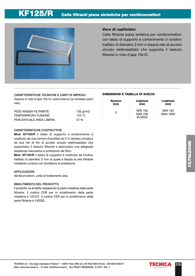TECNICA srl – Via degli Intarsiatori Rolesi 1 – 42047 Rolo (RE) tel.+39 0522 665129 fax. +39 0522 650211