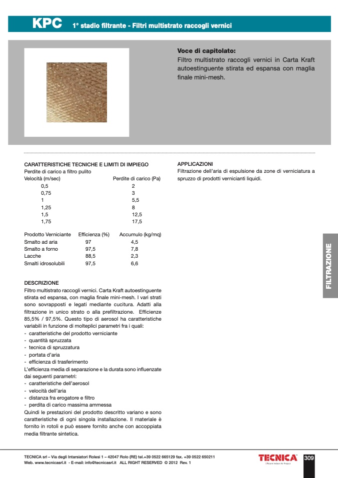 Filtro multistrato raccogli vernici. Carta Kraft autoestinguente