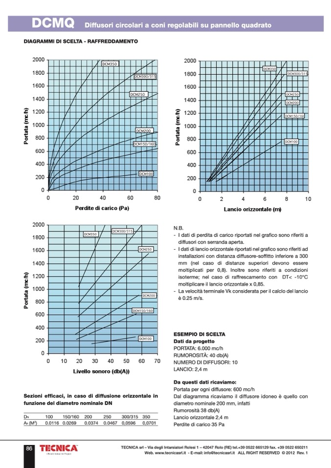 Dal diagramma ricaviamo il diffusore idoneo è quello con