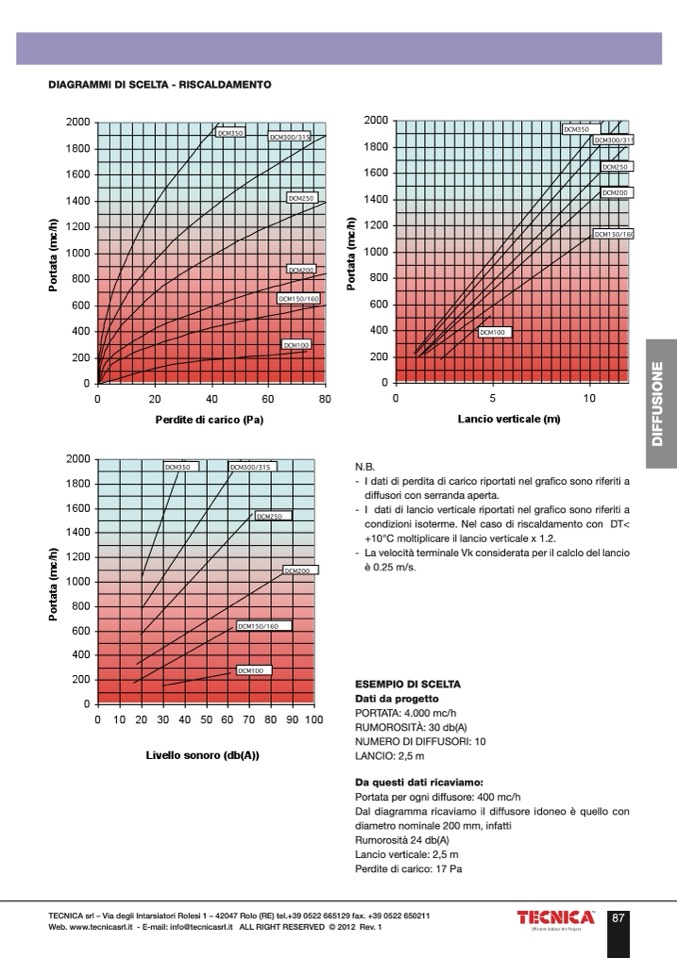 Dal diagramma ricaviamo il diffusore idoneo è quello con