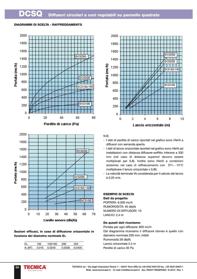 Dal diagramma ricaviamo il diffusore idoneo è quello con