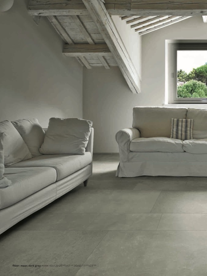 floor: maps dark grey matte 60x120 235/8”x471/4” 30x60 114/5”x235/8”