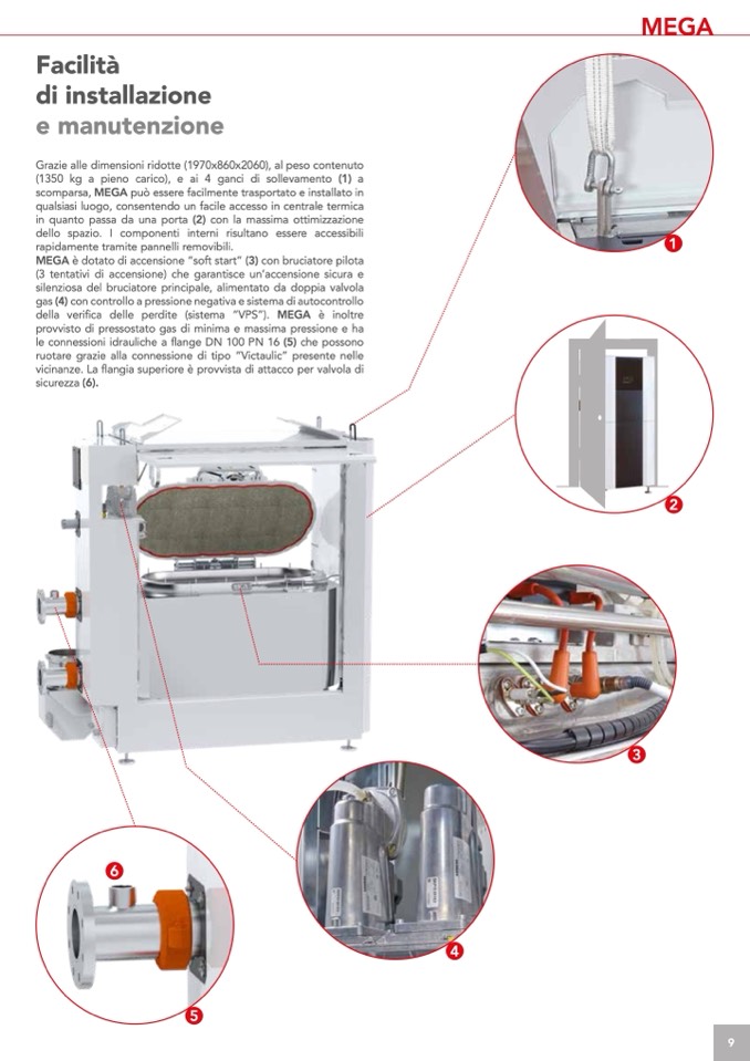MEGA è dotato di accensione “soft start” (3) con bruciatore pilota