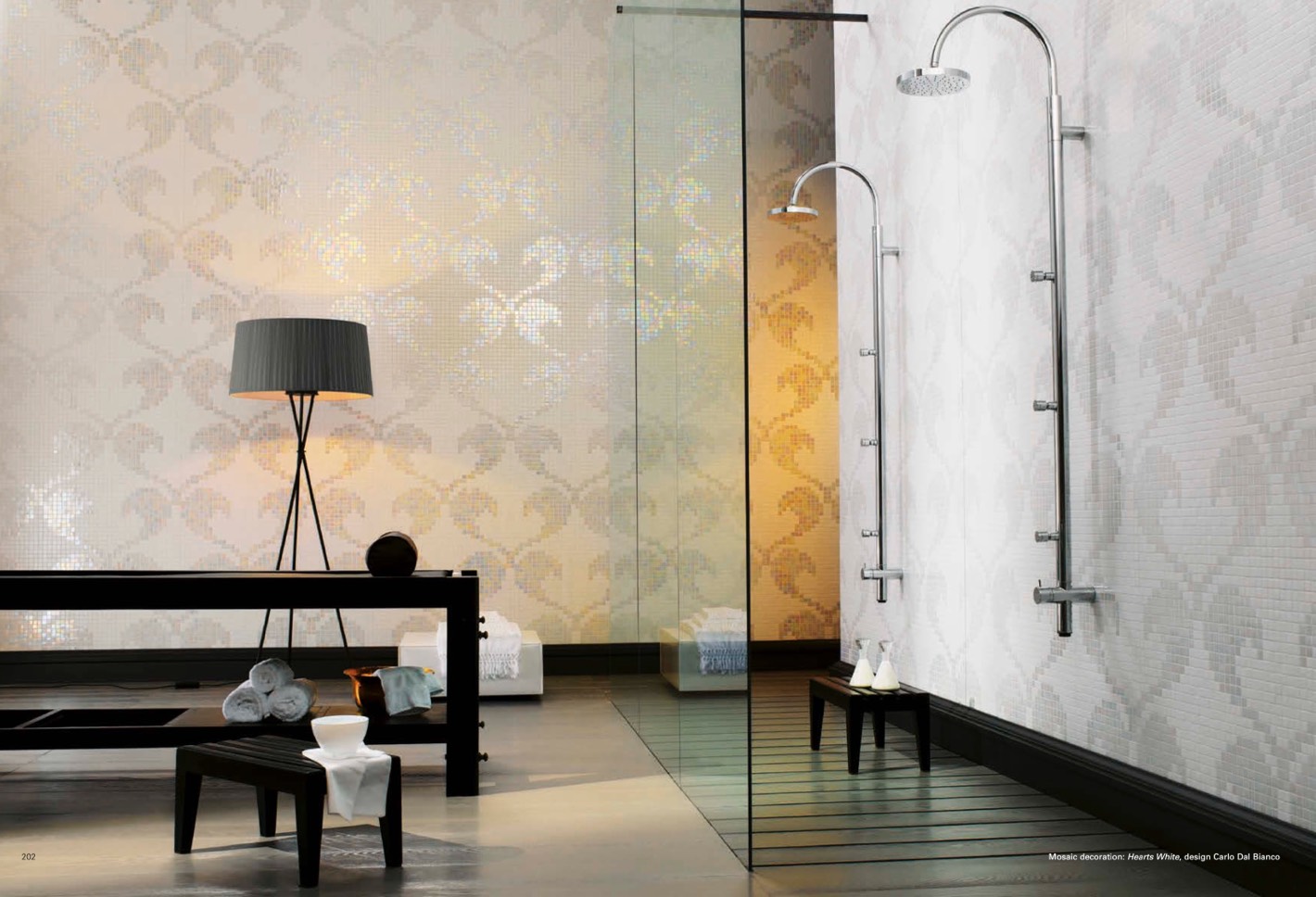 Mosaic decoration: Hearts White, design Carlo Dal Bianco
