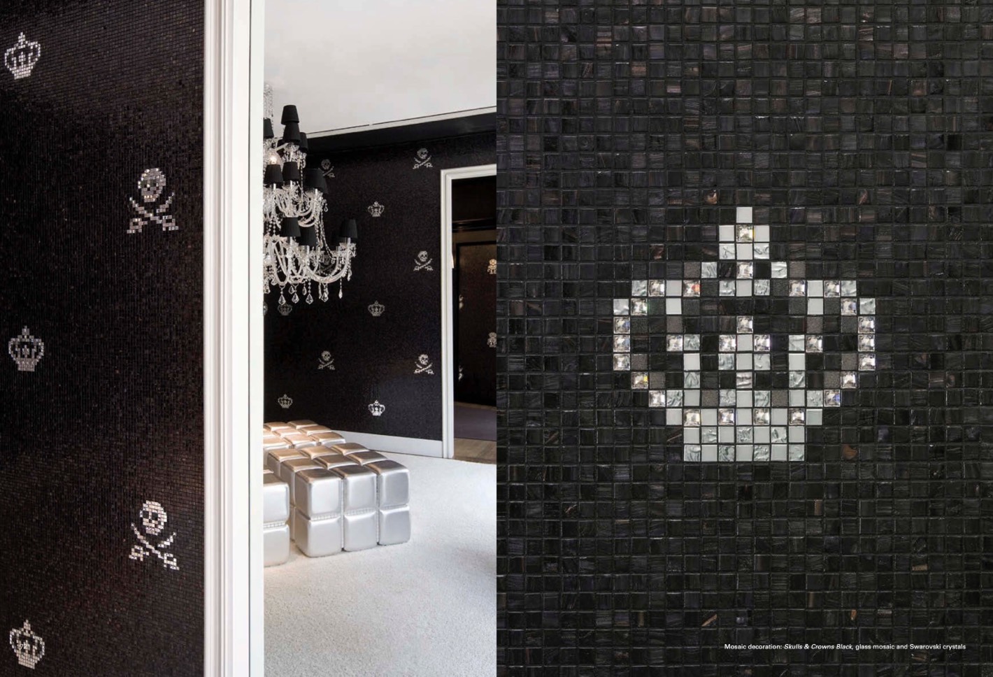 Mosaic decoration: Skulls & Crowns Black, glass mosaic and Swarovski crystals