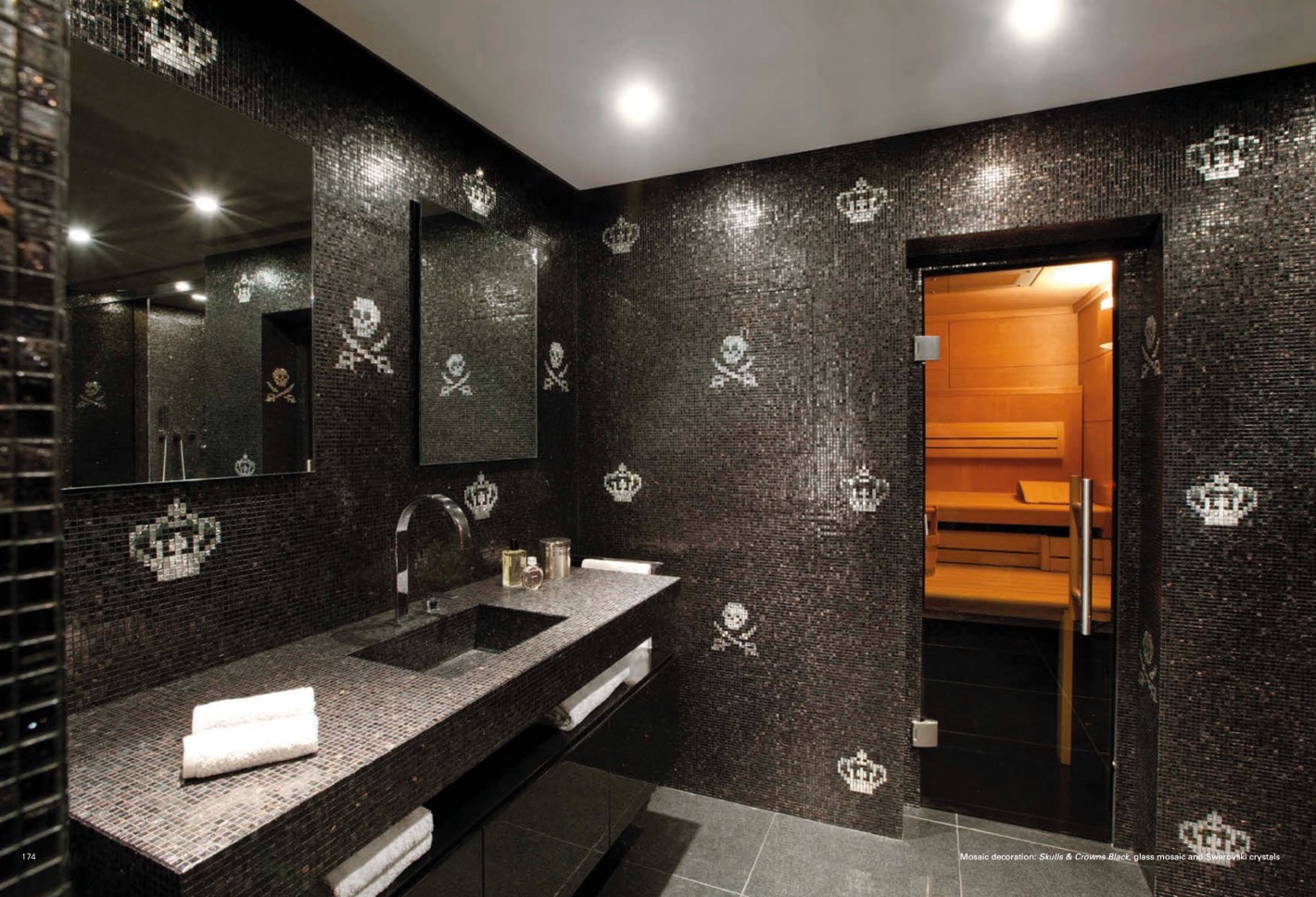 Mosaic decoration: Skulls & Crowns Black, glass mosaic and Swarovski crystals