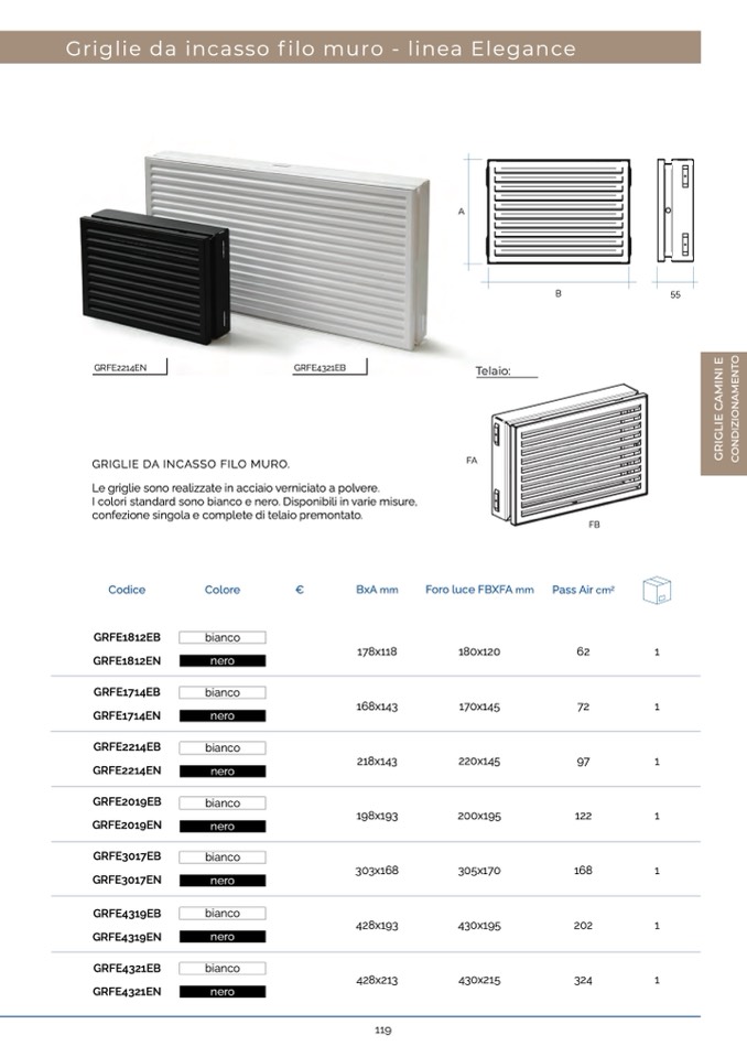 Le griglie sono realizzate in acciaio verniciato a polvere.