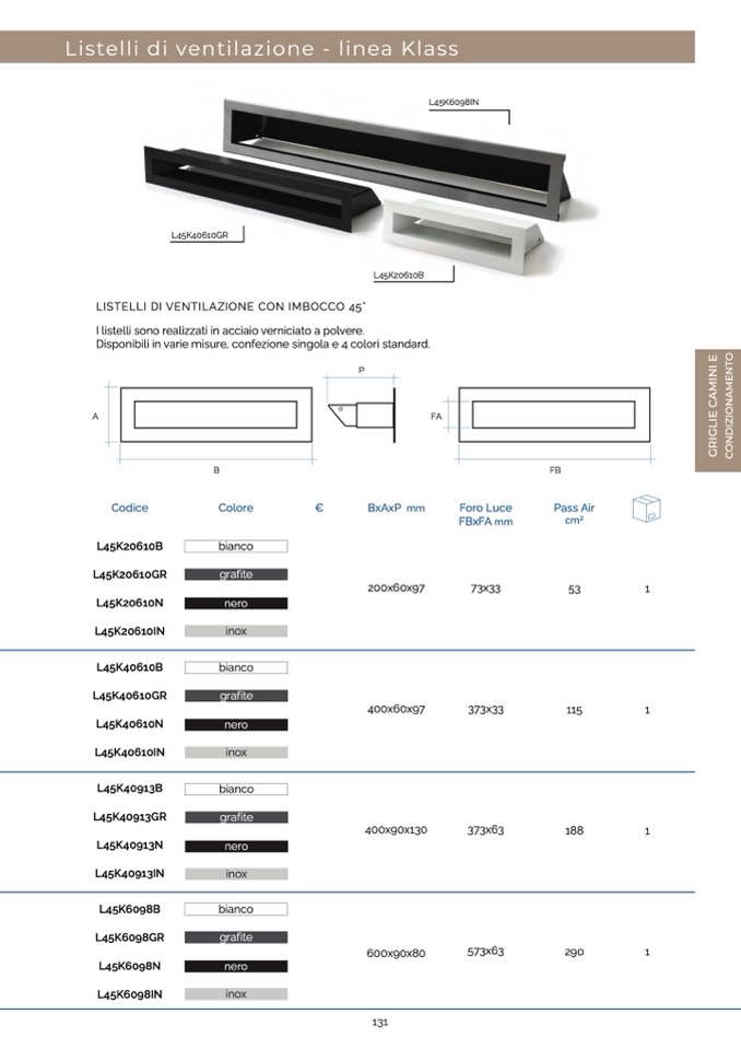 LISTELLI DI VENTILAZIONE CON IMBOCCO 45°