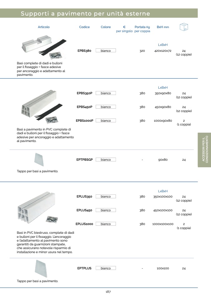 Basi a pavimento in PVC complete di