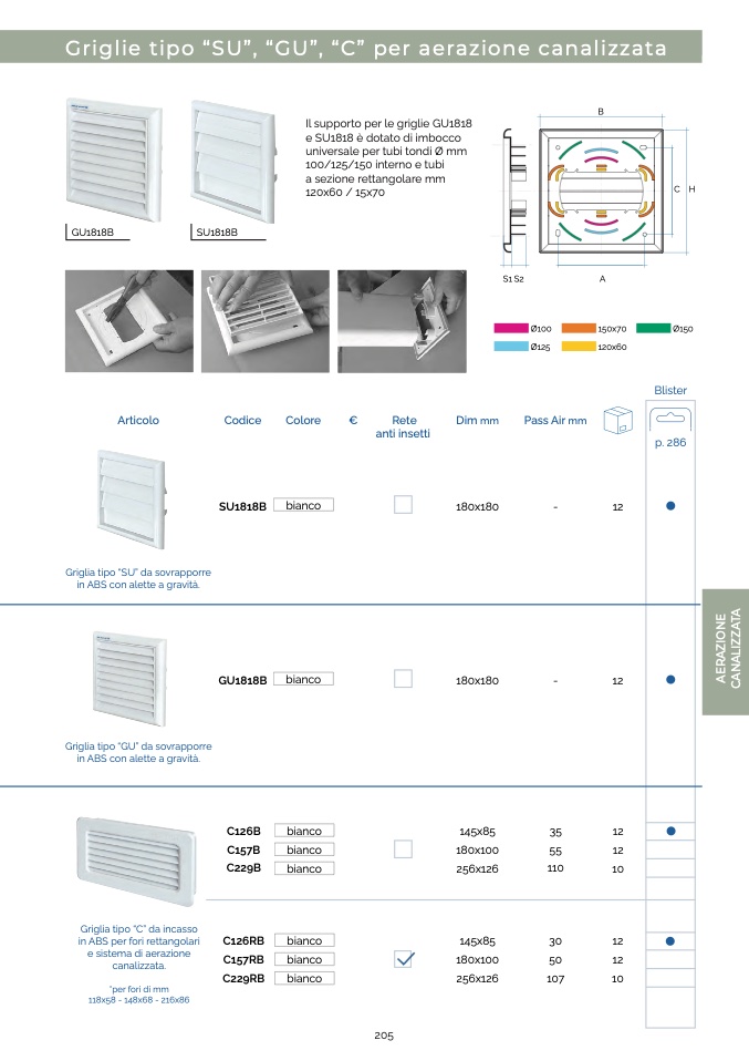 Griglia tipo “C” da incasso