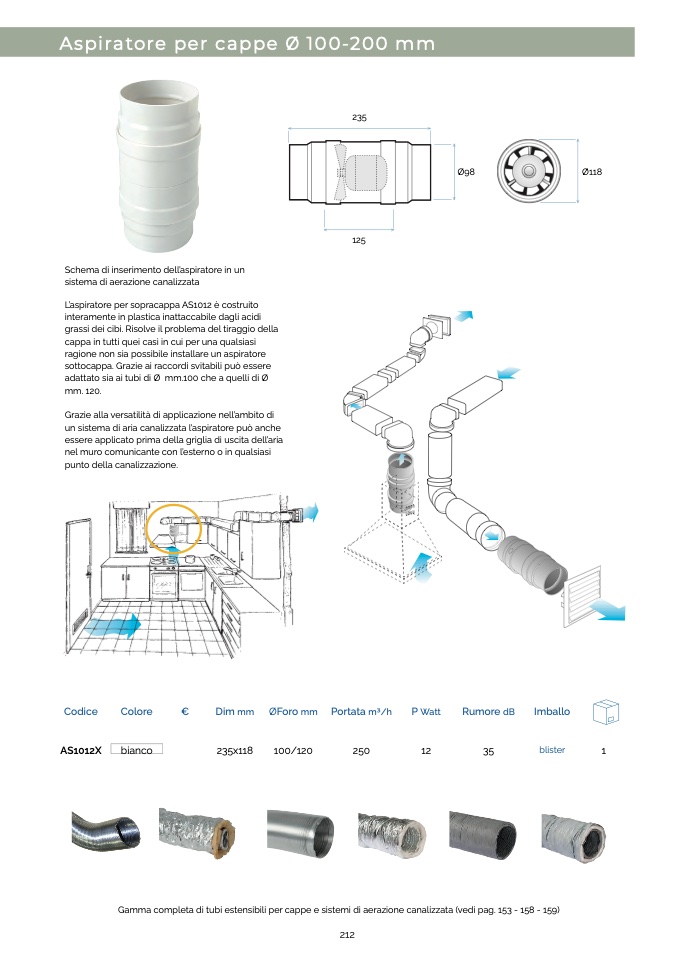 Gamma completa di tubi estensibili per cappe e sistemi di aerazione canalizzata (vedi pag. 153 - 158 - 159)