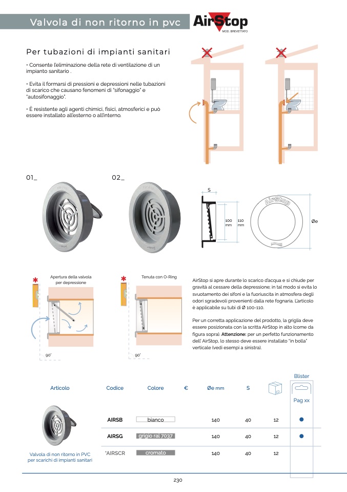 Valvola di non ritorno in pvc
