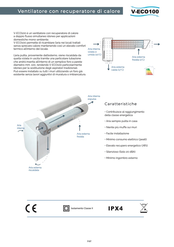 V-ECO100 è un ventilatore con recuperatore di calore