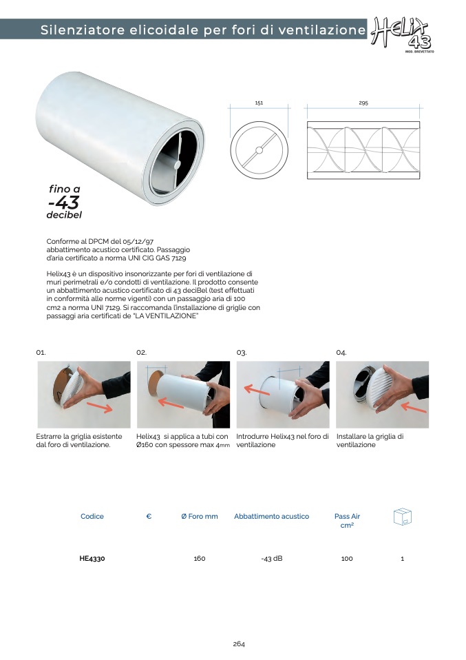 Helix43 è un dispositivo insonorizzante per fori di ventilazione di