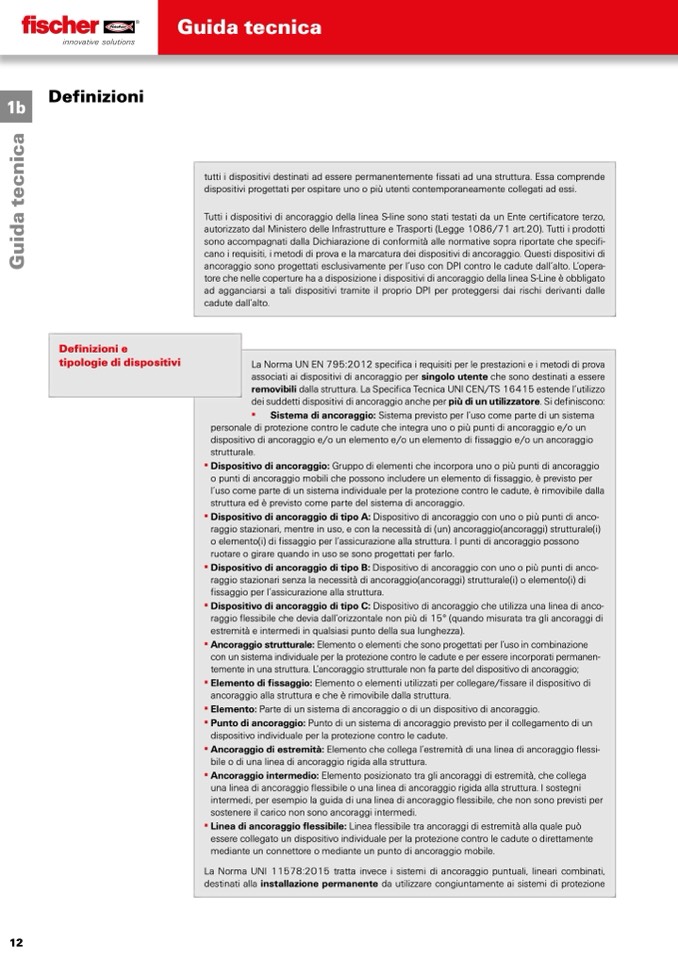 La Norma UNI 11578:2015 tratta invece i sistemi di ancoraggio puntuali, lineari combinati,