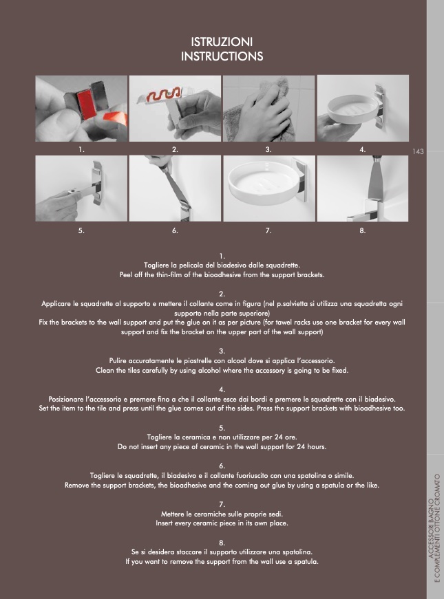 Pulire accuratamente le piastrelle con alcool dove si applica l’accessorio.